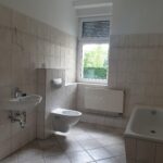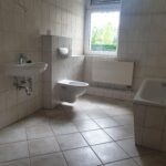 gefliestes Bad mit Badewanne, HWB, WC, WM-Anschluss